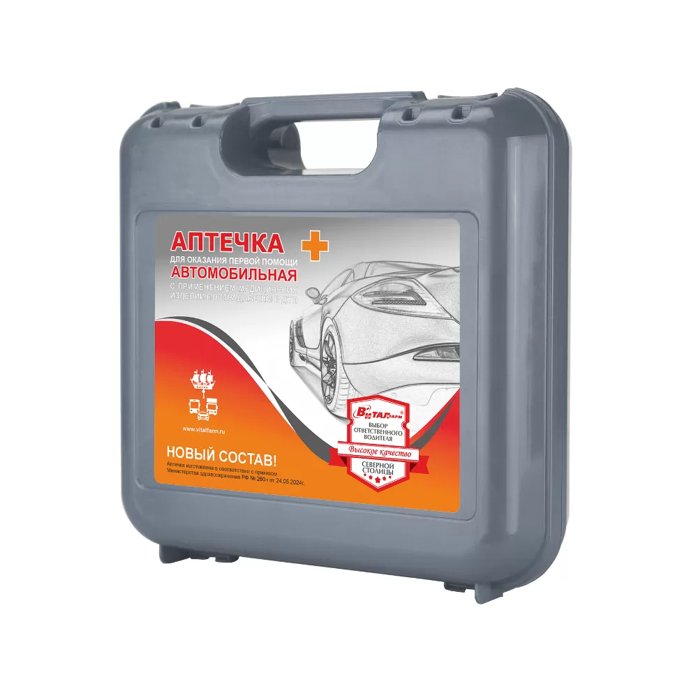 Жесткий футляр в ассортименте, может быть любой из представленных на фотографиях или незначительно отличаться.Аптечка для оказания первой помощи с применением медицинских изделий пострадавшим в дорожно-транспортных происшествиях (автомобильная) предназначена для оснащения транспортных средств (автомобилей).