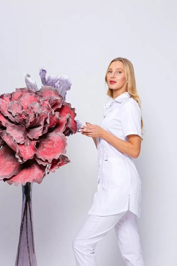 Начнем с того, что данная модель прекрасно скроет ваши недостатки и удачно подчеркнет достоинства! Это ли не чудо? Также короткие рукава идеальны для лета, да и круглый год. Ведь отопление у нас хорошее! К тому же благодаря застежке на кнопках блузу легко снять и надеть. За одно движение! Нагрудные и боковые карманы крайне функциональны, и не забываем, что карманов много не бывает! В дополнение к вышесказанному, хотели сказать про разрезы по бокам, которые делают силует более интересным и не скрадывают длину ваших ног. Также благодаря этому удлиненный силует остается воздушным и легким, однако свои функции выполняет отлично, прикрывая то, что хочется. Мы все продумали за вас!