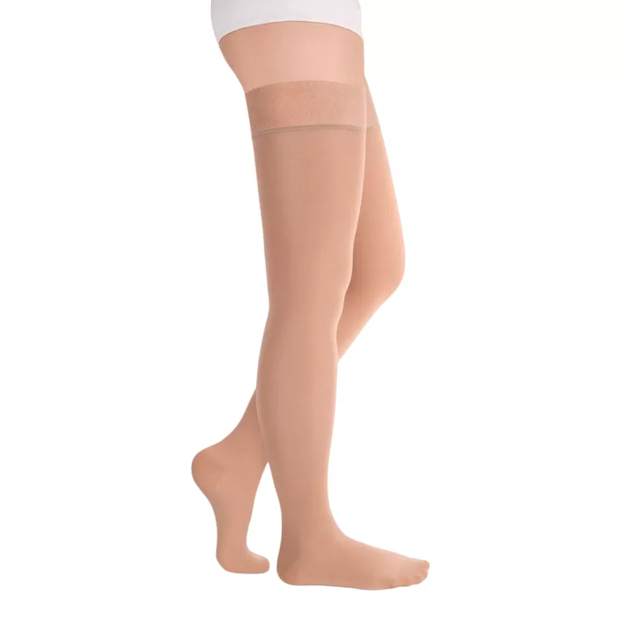- резинка на силиконовой основе, в том числе на широкое бедро, мягко фиксирует чулок , не нарушая кровотока