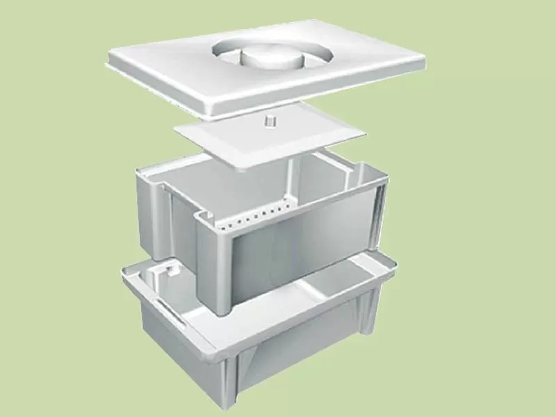 Каждая емкость-контейнер представляет собой комплект, состоящий из корпуса (непрозрачная полимерная емкость), поддона (перфорированная емкость), предназначенного для погружения инструментария в дезинфицирующий раствор, пластины (гнета) и крышки. Пластина обеспечивает полное погружение обрабатываемых инструментов в дезинфицирующий раствор. Крышка позволяет избежать ингаляционного контакта с дезинфекантом медицинского персонала, что особенно важно при химической стерилизации. Наличие поддона исключает контакт раствора с руками, позволяет создавать активную циркуляцию и самостекание дезинфицирующего раствора.