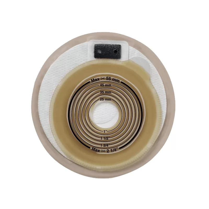 Мини кап Alterna® нового поколения со встроенной плоской пластиной клеевой пластиной спиралевидной структуры используется для при колостоме (сигмостоме) с оформленным кишечным отделяемым для людей, ведущих активный образ жизни, а также для ухода за отключенным стволом раздельной стомы.