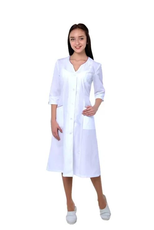 Полуприлегающего силуэта с втачными рукавами ¾, без воротника Центральная бортовая застежка на 5 петель и 5 пуговиц. По горловине – отделочный кант.