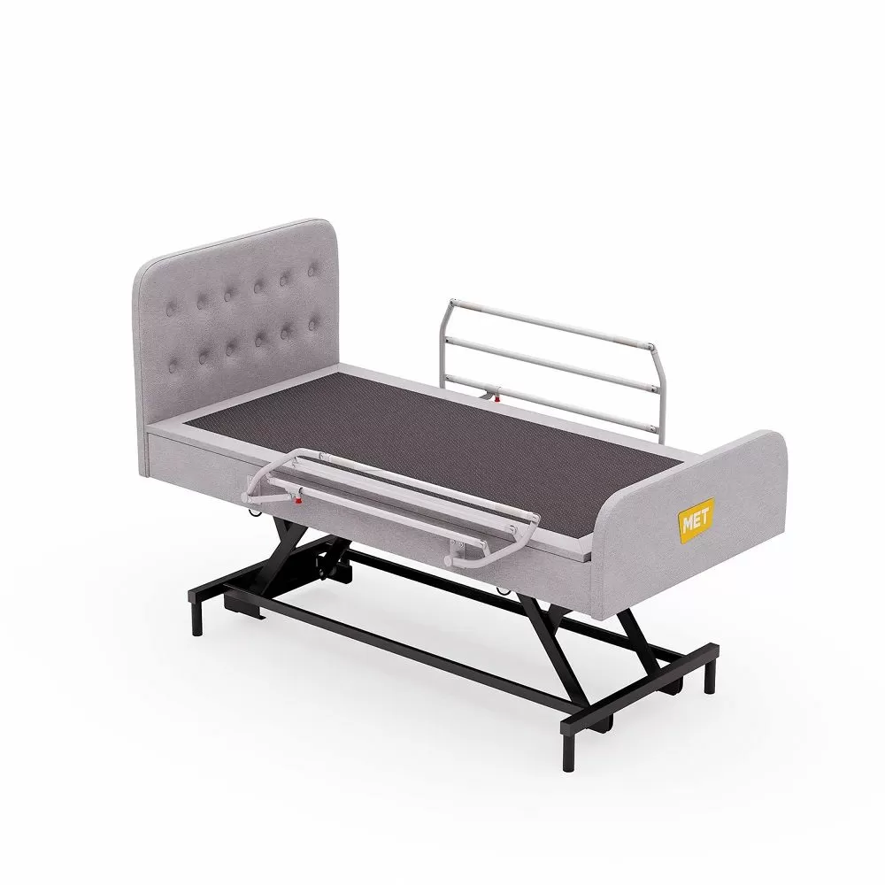 - Регулировка высоты ложа. Регулировка высоты делает кровать безопаснее и удобнее в использовании. Опущенное положение снижает риск падений, а поднятое — облегчает уход за пациентом. Дополнительно функция помогает адаптировать кровать под индивидуальные нужды: комфортный подъем для пожилых людей, удобная высота для пересаживания в кресло или смены белья.