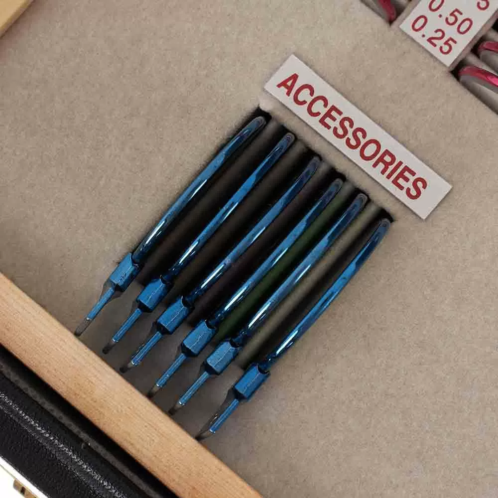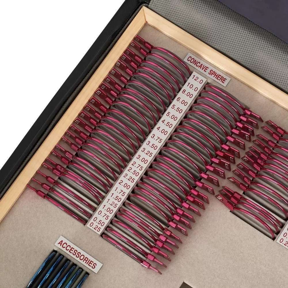 - Набор оснащен широким перечнем вспомогательных линз, предназначенных для различных дополнительных исследований зрения: окклюдер, точечная диафрагма, щелевая диафрагма, красный светофильтр, зеленый светофильтр, плоскопараллельная пластина.