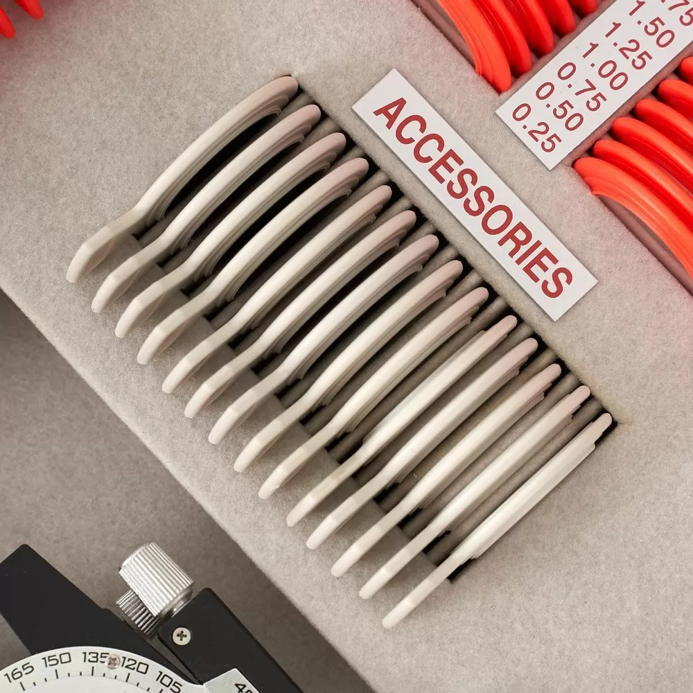 - Вспомогательные линзы предназначены для различных вспомогательных исследований зрения (точечная диафрагма, красный и зеленый светофильтр, матовая пластина, полуматовая пластина, скрещенные цилиндры, плоскопараллельная пластина, перекрестье, окклюдер, щелевая диафрагма).
