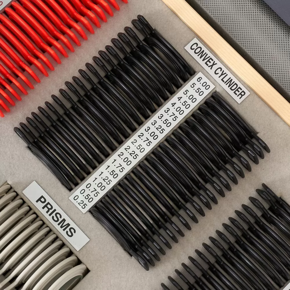 - Призматические линзы применяются при проверке косоглазия, скрытого косоглазия, а также для тренировки структур глаза. В набор входят линзы в диапазоне 0,5-10,0 диоптрий.