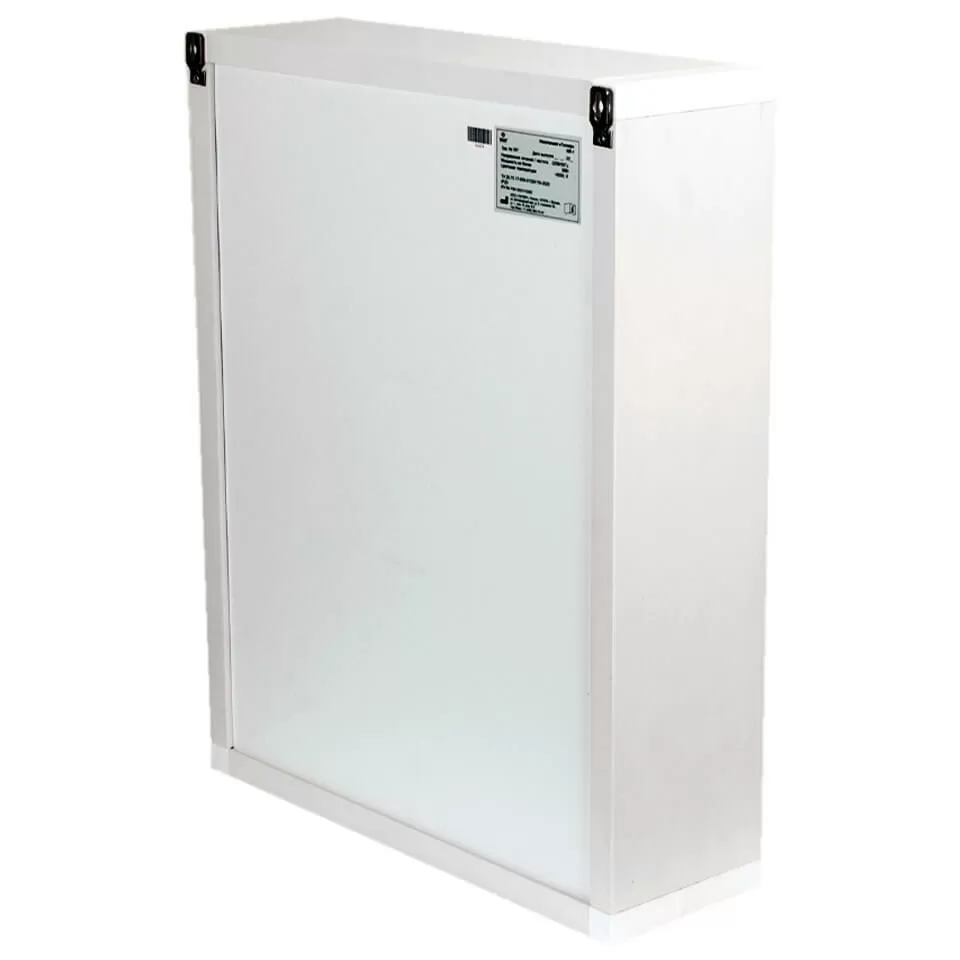- Выполнен в виде прямоугольного пластикового корпуса с матовым молочно-белым экраном и сетевым выключателем