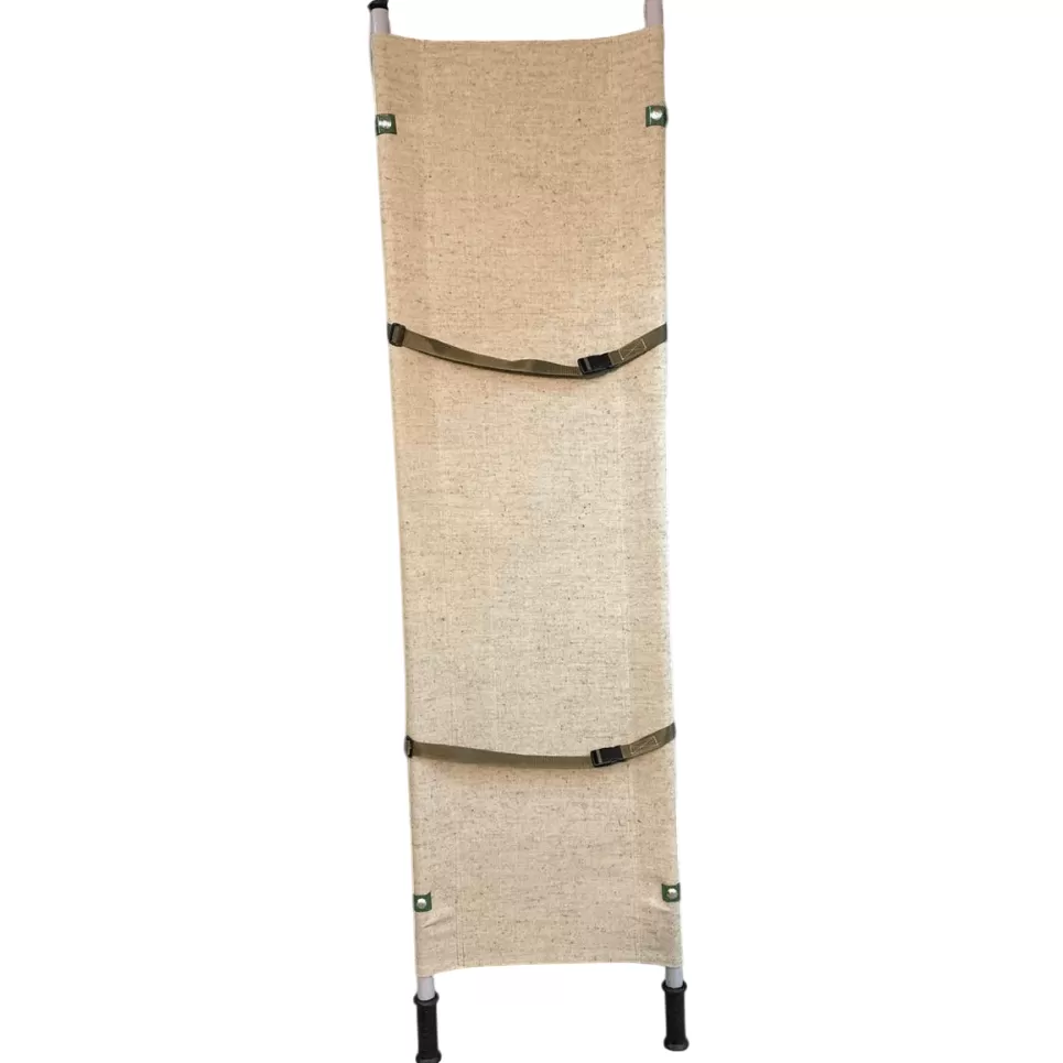 - каркас из алюминиевого сплава с натянутым полотнищем из высокопрочной полиамидной ткани, ткани ПВХ, полульняной парусины с водоупорной и противогнилостной пропиткой, есть резиновые ручки