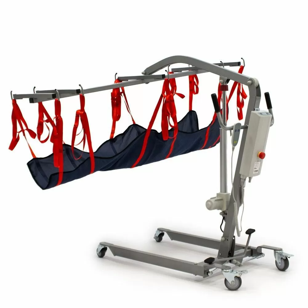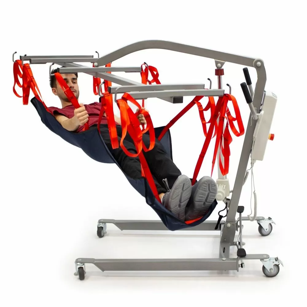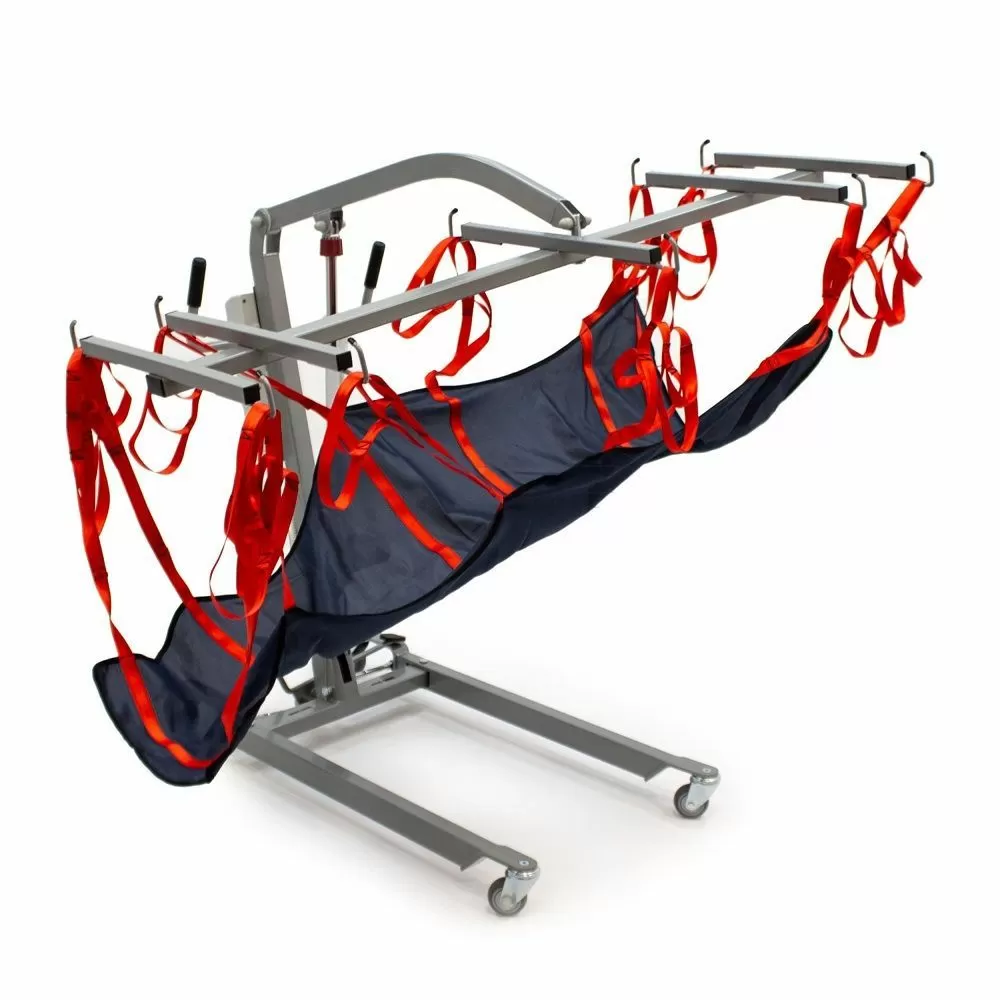 В комплекте с подъемником есть гамак. Обращаем ваше внимание, что для безопасной транспортировки больного, таз пациента должен быть размещен между двумя центральными швами гамака.