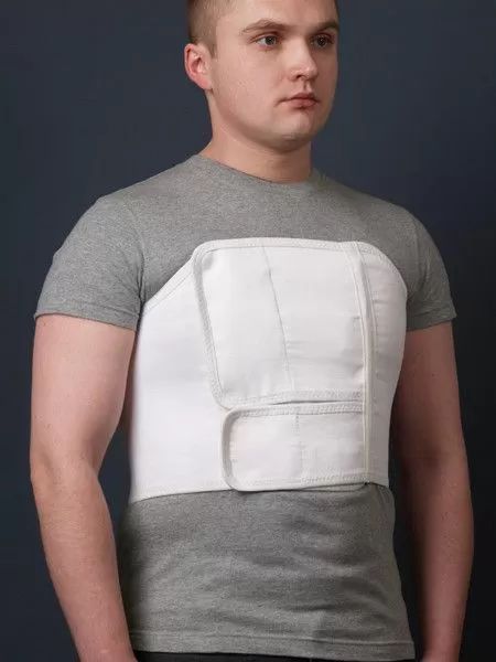 - Обеспечивает фиксацию послеоперационного шва после операций на органах грудной клетки и брюшной полости.
