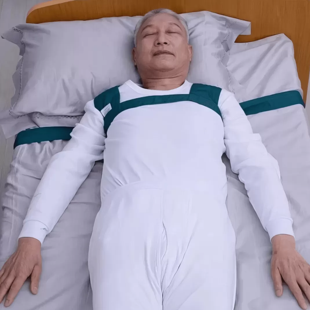 Конструкция жилета предотвращает падение с кровати. Крепится к кровати ремнями. Обеспечивает свободу для движения рук и ног.Особенности