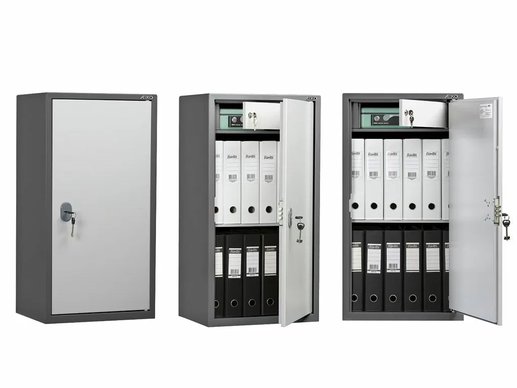 Шкаф бухгалтерский AIKO SL 87 T поставляется в собранном виде, имеет комбинированную порошковую двухцветную окраску: корпус - графит (RAL 7024), дверь - светло серая (RAL 7038)
