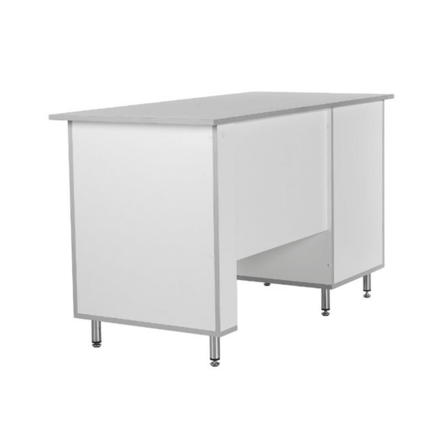 - Стол установлен на регулируемые по высоте хромированные опоры, глянцевая поверхность которых устойчива к коррозии, позволяет легко производить уборку и дезинфекцию помещений