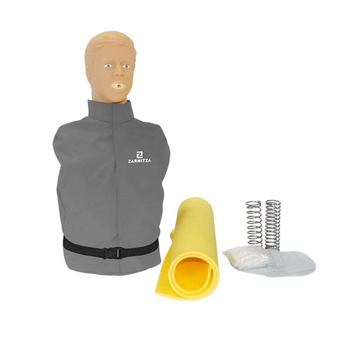 Тренажер-манекен представляет собой имитацию торса взрослого пострадавшего и предназначен для отработки приемов сердечно-легочной реанимации с возможностью контроля качества выполнения упражнений.Тренажер-манекен оборудован системой датчиков и устройств, предназначенных для имитации процессов жизнедеятельности человека, диагностируемых в полевых условиях, а также для контроля над правильностью проведения реанимационных мероприятий.