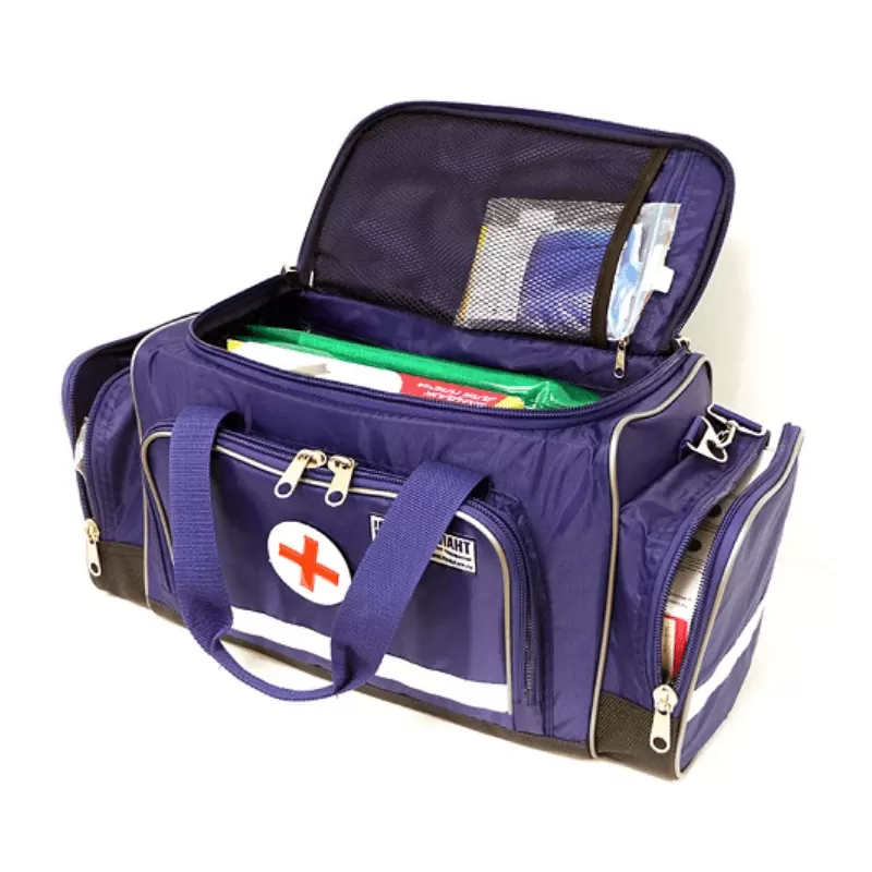 На внешней части сумки расположен держатель для информационной таблички (для обозначения номера бригады и т.п.) и эмблема красного креста.