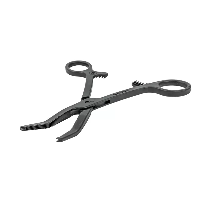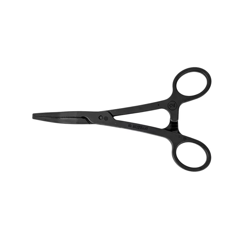 Зажим Кохера изогнутый одноразовый стерильный, хирургический инструмент, предназначенный для захватывания и пережатия кровеносных сосудов и кровоточащих участков при хирургических операциях.